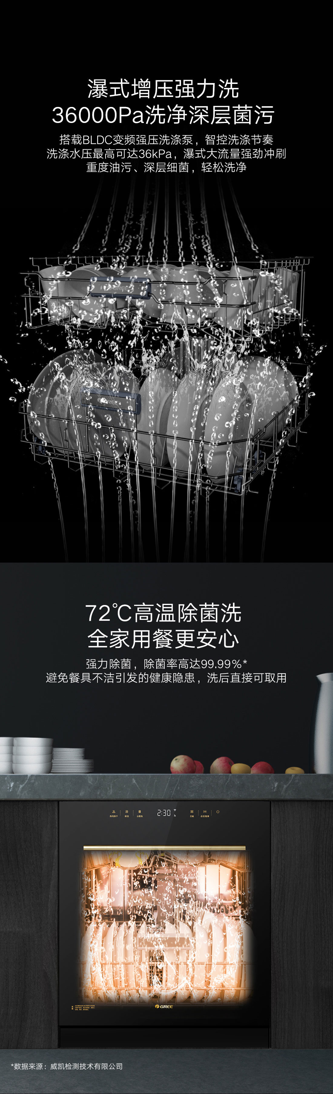搭載瀑式增壓強(qiáng)洗科技,36KPa洗凈深層菌污,除菌率達(dá)99.99%;洗烘除存一體,存放7天也干爽